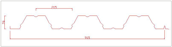玉发品牌 915 楼承板成型设备长 16000mm 、宽 1500mm 、高 1300mm ,成型楼承板材有效覆盖宽度 915mm ,波高 76mm ,波距 305mm ,板材厚度可根据用户使用需求选择 0.8-1.5mm ,具体设备参数如下。如需专用设备定做,可拨打玉发压瓦机 服务热线: 0317-8185306 ,提供相关参数,由玉发压瓦机_技术人员为您设计合理的解决方案。